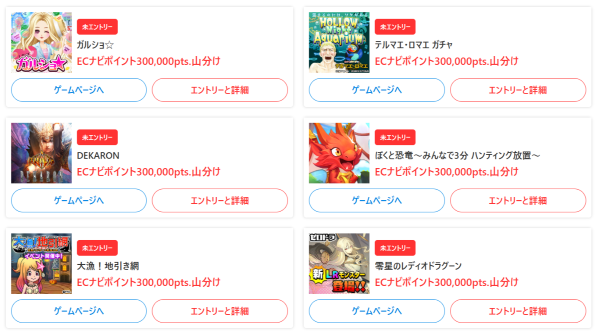 様々なゲームが用意された「ECナビゲームズ」で遊ぶだけでもポイントを獲得できます。